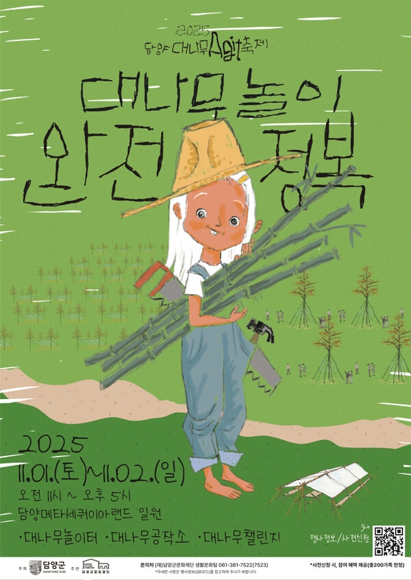 담양군문화재단(이사장 정철원)은 오는 11월 1일부터 2일까지 이틀간 담양 메타세쿼이아랜드 일대에서 '2025 담양대나무아지트축제 : 대나무놀이X완전정복'을 개최한다고 밝혔습니다.