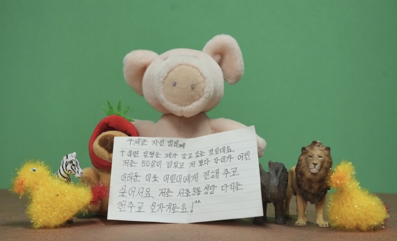 서울 명동에 세워진 자선냄비엔 최근 한 50대 기부자가 가지고 있던 인형 여러 개를 편지와 함께 기부했습니다.
