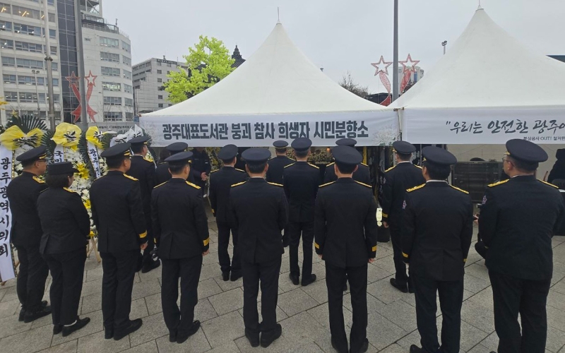 광주 서부소방서는 24일 오전 10시 반쯤 동구 5·18민주광장에 마련된 광주대표도서관 붕괴사고 희생자 시민 분향소를 방문했다고 밝혔습니다.