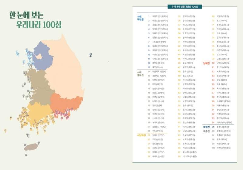 이번 조사 결과는 국내 100개 섬의 생물다양성 정보를 비교·분석해 섬별 생물다양성 수준과 특성 차이를 한눈에 파악할 수 있도록 정리한 것이 특징입니다.