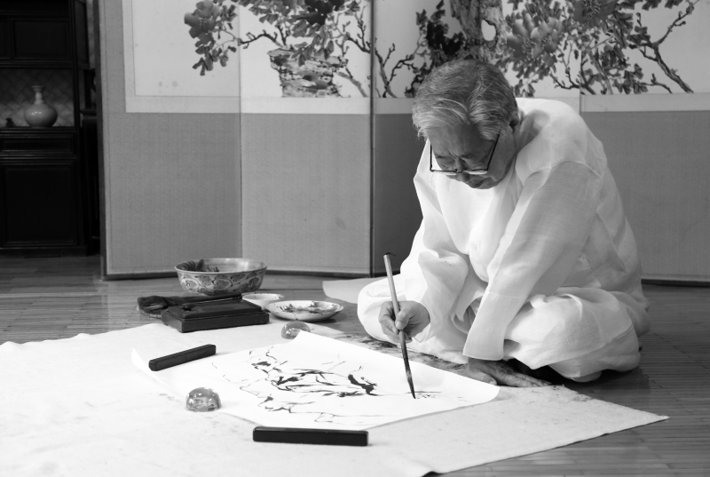 그러나 박 화백은 아흔 살을 바라보는 나이에 건강을 유지하며 여전히 먹을 갈고 붓을 들어 화선지를 누비는 노익장을 과시하고 있습니다.