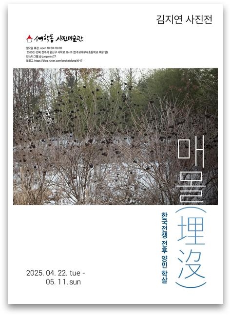 광주광역시 출신으로 전북 전주에서 활동하고 있는 김지연 사진작가가 22일부터 다음 달 11일까지 전주 서학동사진미술관에서 한국전쟁 전후 발생한 양민 학살을 다룬 《매몰》 사진전을 개최합니다.