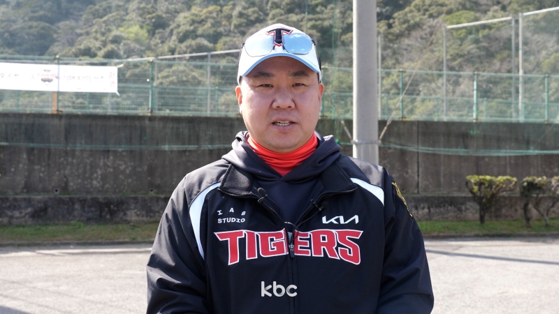 ▲ 일본 아마미오시마서 KBC 취재진과 인터뷰하는 이범호 감독