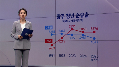 【 앵커멘트 】 일자리와 고임금, 여가·문화 인프라 등을 찾아 수도권으로 떠나는 광주 지역 청년들의 수가 갈수록 늘고 있습니다. 산업구조 고도화를 통해 질 좋은 일자리를 늘리는 것뿐 아니라, 사회적 임금을 강화하고, 일상적 도시경험을 개선하는 등의 노력이 필요하다는 지적입니다. 정경원 기자가 자세히 전해드립니다. 【 기자 】 국가데이터처 자료에 따르면, 지난 2020년 이후 해마다 광주의 청년 인구 5~6천 명이 수도권으로 순유출되고 있습니다. 올해도 벌써 3분기까지 4천 명 넘게 수도권으로 빠져나간 것을 포함해