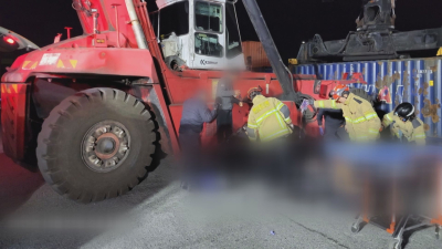전남 광양의 한 컨테이너부두 경사로에서 60대 운전자가 트레일러와 중장비에 끼여 숨지는 사고가 발생했습니다. 어제(22일) 오후 8시쯤 광양시 도이동 컨테이너부두에서 운수업체 직원 60대 A씨가 하역 작업을 하던 중 트레일러가 뒤로 밀리자 이를 막으려다 사고를 당한 것으로 조사됐습니다. 경찰은 트레일러 차량의 사이드 브레이크가 풀려 있던 점 등을 토대로 정확한 사고 경위를 조사하고 있습니다.