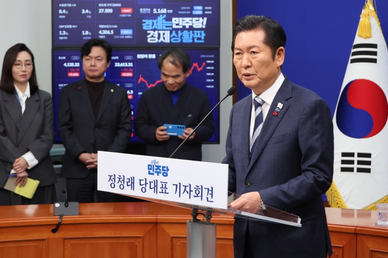 ▲ 더불어민주당 정청래 대표가 26일 서울 여의도 국회에서 열린 기자회견에서 '2차 종합특검법'의 추진 방향과 '통일교 특검법' 관련 쟁점 등에 대한 입장을 설명하고 있다 [연합뉴스]