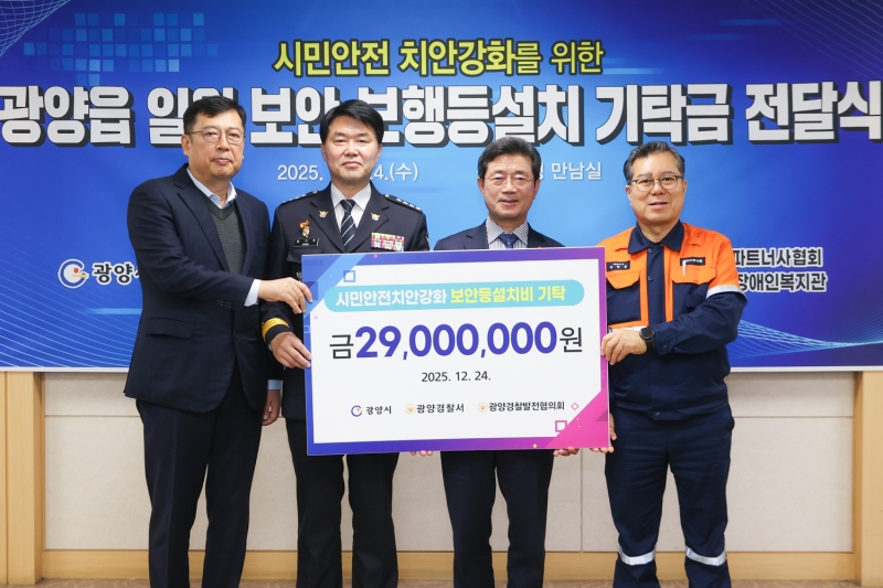 정인화 광양시장은 "시민 안전과 치안 강화를 위해 참여해 주신 기업들에 감사드린다"며 "시민들에게 보다 밝고 안전한 생활환경을 제공할 수 있게 되어 뜻깊다"고 전했습니다.
