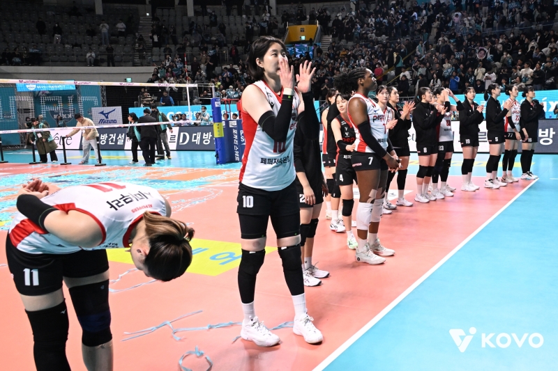 ▲ 경기를 마치고 관중에게 인사하는 AI페퍼스 [KOVO]