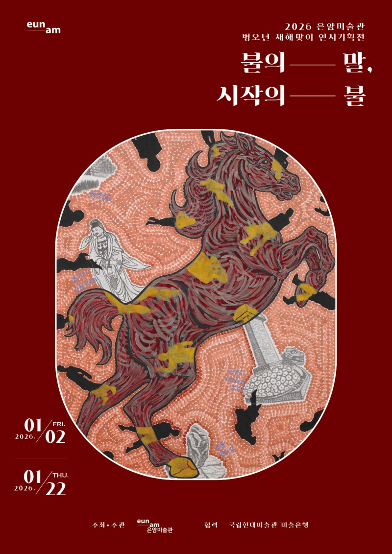 광주 은암미술관(동구 서석로85번길 8-12)에서는 병오년을 맞아 1월 22일까지 신년 기획전 '불의 말, 시작의 불'을 선보입니다. '불'과 '속도', '생명력', '변화'라는 네 가지 키워드를 중심으로, 말이 지닌 상징성과 예술가의 창작 정신을 엮어낸 이번 전시는 새해의 강렬한 에너지로 가득 차 있습니다.
