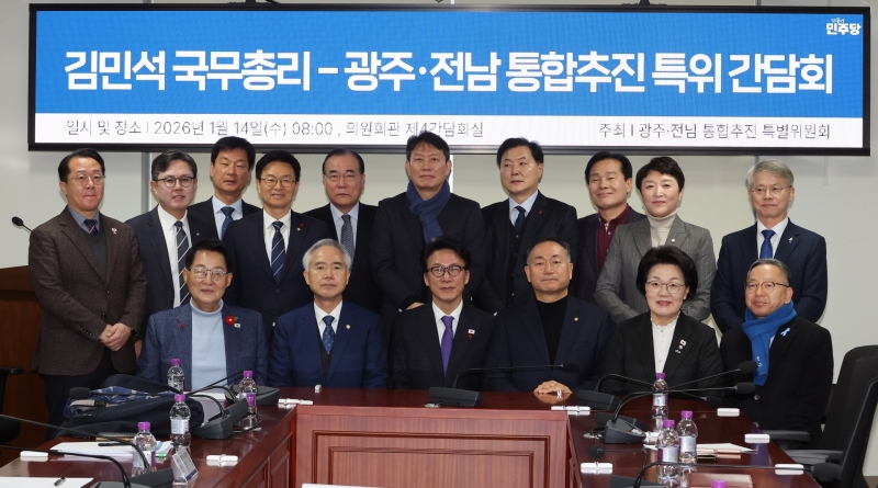 김민석 국무총리와 더불어민주당 광주·전남 지역 국회의원들이 14일 국회의원회관에서 간담회를 갖고, 광주·전남 행정통합을 위한 특별법 제정과 정부 차원의 파격적인 지원 방안을 논의했습니다.