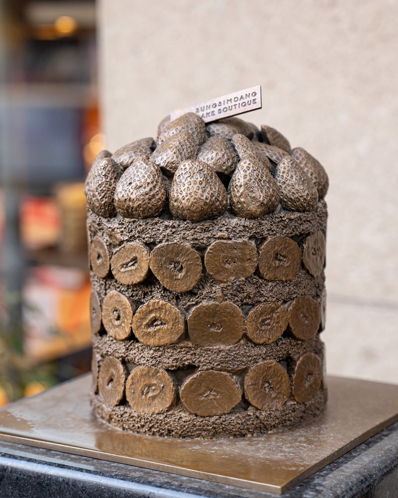 이번에 공개된 딸기시루 동상은 실제 케이크를 본뜬 디자인으로, 약 2.3kg에 달하는 케이크의 묵직함을 시각적으로 잘 표현해내고 있습니다.