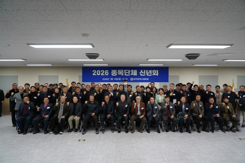 광주광역시체육회가 19일 체육회관 2층 중회의실에서 '2026 종목단체 신년회'를 열고 새해 체육 정책의 비전과 청사진을 공유했습니다.