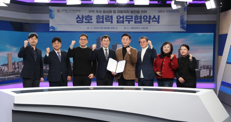 ▲ 지방자치TV와 한국축제포럼은 19일 서울 여의도 소재 지방자치TV 스튜디오에서 지역 축제 활성화 및 지방자치 발전을 위한 업무협약을 체결했다 [지방자치TV]