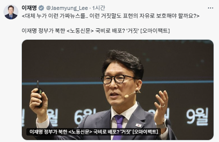 이 대통령은 이날 엑스(X·옛 트위터)에 이같이 글을 남기면서 "이런 거짓말도 표현의 자유로 보호해야 할까요"라고 되물었습니다.