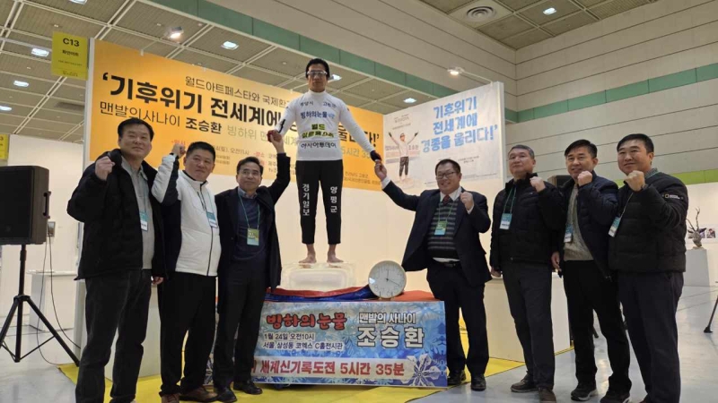 26일 전남 광양시에 따르면 광양시 홍보대사인 조 씨는 지난 24일 서울 코엑스에서 열린 '월드아트페스타' 개막식에서 '얼음 위에 맨발로 오래 서 있기' 5시간 35분 기록을 세웠습니다.