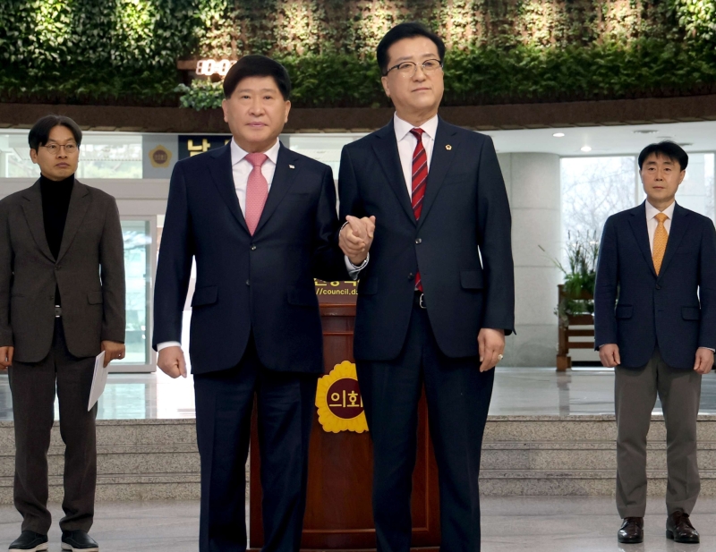 조원휘 대전광역시의회 의장과 홍성현 충청남도의회 의장은 1월 29일 대전시의회에서 공동 기자회견을 개최하고, 통합 특별시 출범을 앞두고 의회의 독립성과 실질적인 자치권 확보를 위해 정부와 국회의 적극적인 협력을 요청했습니다.