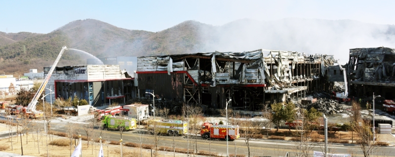 불에 녹아 찢긴 외장 패널이 너덜너덜 매달린 채 철골 골조가 드러났고, 일부 공장은 철골이 엿가락처럼 완전히 휘었습니다.