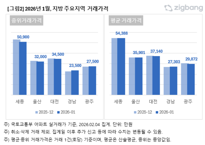 ▲ 2026년 1월, 지방 주요지역 거래가격 [직방]