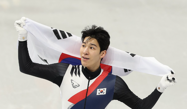 2022년 베이징 올림픽 금메달을 목에 건 황대헌은 이번 대회에선 은메달을 거머쥐었습니다.