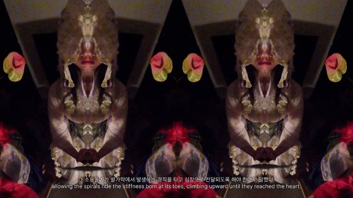 이주연은 <헤비웨더>를 비롯한 연작을 통해 기록되지 않은 노동과 사라진 존재의 흔적을 추적합니다. 당인리 발전소 인근 공장을 둘러싼 소문과 사라진 여성 노동자의 이야기를 다큐멘터리 형식으로 풀어내며, 한강에서 우연히 포착한 정체불명의 소리를 '물귀신으로 남은 여공의 목소리'로 상상합니다. 영상과 사운드를 결합한 작업은 사회적 고립과 노동 불안정, 기술 환경 속 몸의 경험을 감각적으로 환기합니다.