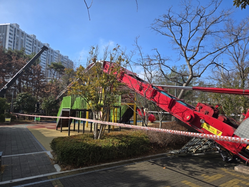 ▲ 놀이터 덮친 사다리차 [광주 서구청]