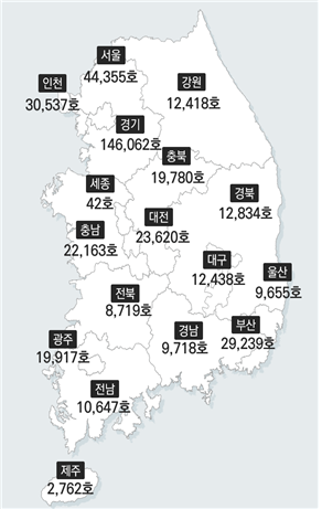 경기도 14만 6,062가구, 서울 4만 4,355가구, 인천 3만 537가구 등 수도권이 전체 입주 예정 물량의 절반이 넘는 53%를 기록했습니다.