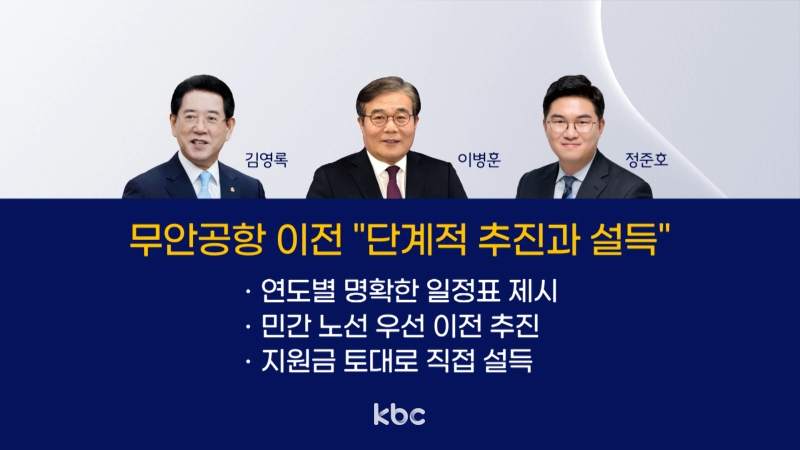 김영록 후보는 공항 이전 전담 본부를 설치하고 우선 이전이 가능한 영역부터 속도를 내겠다고 밝혔습니다.