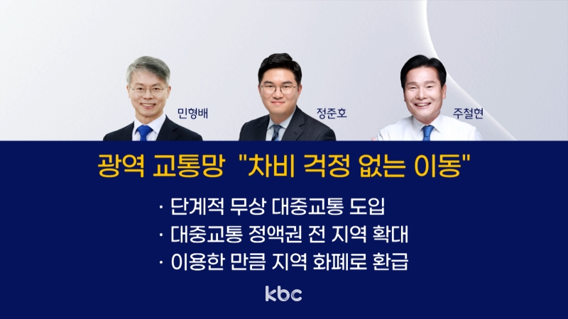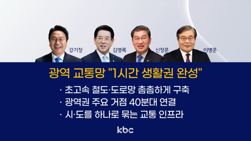 하나의 교통망으로 생활권을 결합하고 물리적 거리를 좁힐 초광역 대중교통망 확충과 관련해 후보들은 대규모 철도망과 버스망의 연계를 약속했습니다.