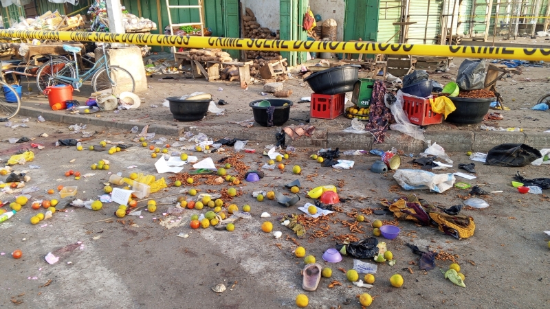▲ 17일(현지시간) 나이지리아 마이두구리시의 시장에 전날 폭발과 관련해 폴리스라인이 설치돼 있다 [연합뉴스]