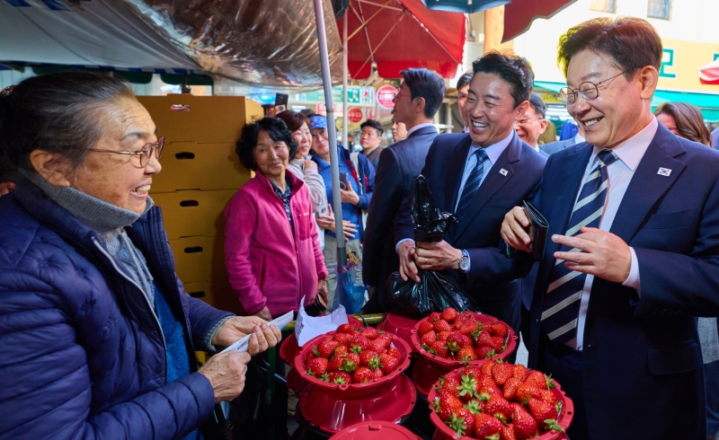 이재명 대통령은 25일 경남 진주시의 진주중앙시장을 방문해 시민들과 인사하고 민생 현장을 살폈습니다.