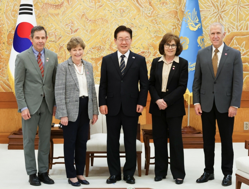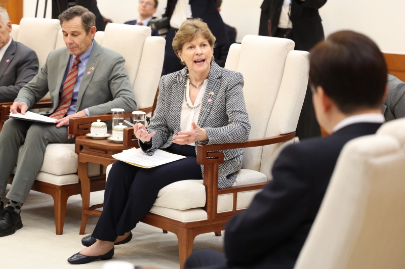접견에는 미국 측에서 공화당 톰 틸리스 의원과 존 커티스 의원, 민주당 진 섀힌 의원과 재키 로젠 의원이 참석했고, 제임스 헬러 주한미국대사대리도 자리했습니다.