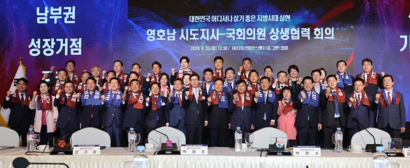 영호남 시도지사 협력회의가 서울 한국경제인협회(FKI타워 컨퍼런스센터)에서 지역 국회의원 초청 상생협력 회의로 개최돼 영호남 균형발전을 위한 협력을 다짐하는 기회를 가졌습니다.