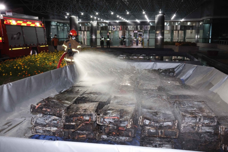 화재로 전소된 리튬이온 배터리 384개는 전날 오후 모두 반출이 끝났습니다.