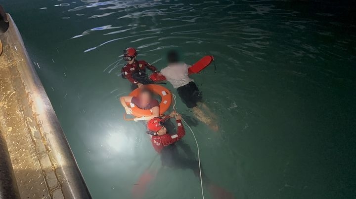 10월 7일 오전 3시 20분경 완도항 인근 해상에서 술에 취한 20대 여성 A씨와 A씨를 구하려 바다에 뛰어든 B씨가 완도해양경찰서에 의해 구조됐습니다.