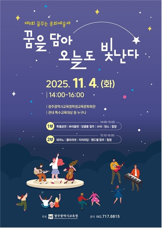 광주광역시교육청은 다음 달 4일 오후 2시 광주시교육청 학생교육문화회관에서 '제9회 꿈꾸는 문화예술제'를 개최할 예정입니다.