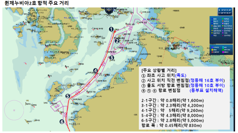 김 센터장은 "(퀸제누비아2호는) 사고 해역에 올 때까지는 정상 속도와 정상 항로를 따라오고 있는 것은 확인됐다"면서 "VTS를 통해 여객선으로부터 신고를 접수하고 좌초 사실을 인지했다"고 덧붙였습니다.