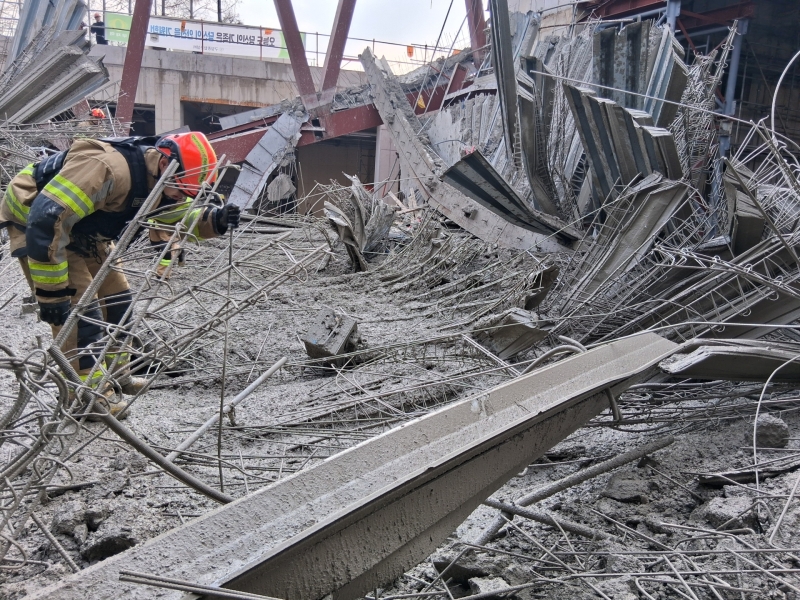 11일 낮 1시 58분쯤 타설 중이던 콘크리트가 무너져 내리면서 노동자 4명이 매몰됐습니다.